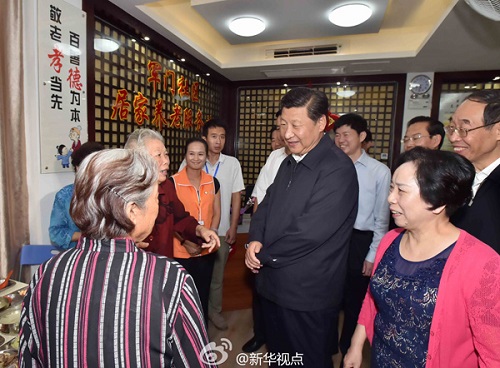 習近平來到福州鼓樓區軍門社區居家養老服務站看望老人,祝老人們健康長壽。聽說社區90歲以上老人有40多位、百歲老人有2位,他說,現在是老年社會,養老服務工作越來越重要。他叮囑工作人員“好好干”。